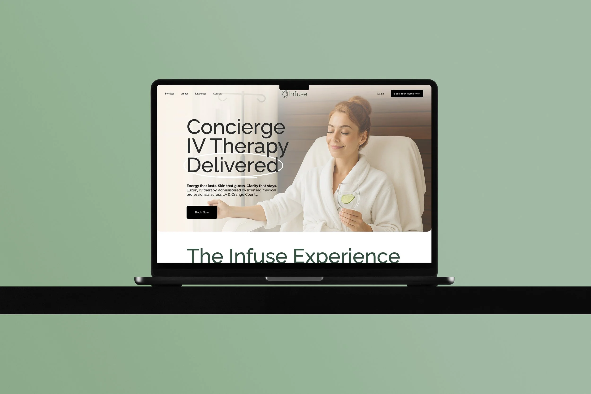Infuse IV Hydration is a physician-led, concierge IV therapy company delivering premium hydration and high-dose NAD+ treatments directly to clients’ homes throughout Los Angeles, Beverly Hills, and Orange County. The founders partnered with Beveled Design Co. with a bold objective: to become the #1 luxury mobile IV therapy provider in California. However, the category was crowded with generic, clinic-style competitors blending into a sea of interchangeable blue branding and transactional messaging. What they required wasn’t another logo—it was strategic positioning capable of elevating them above the noise and into a category of their own.
