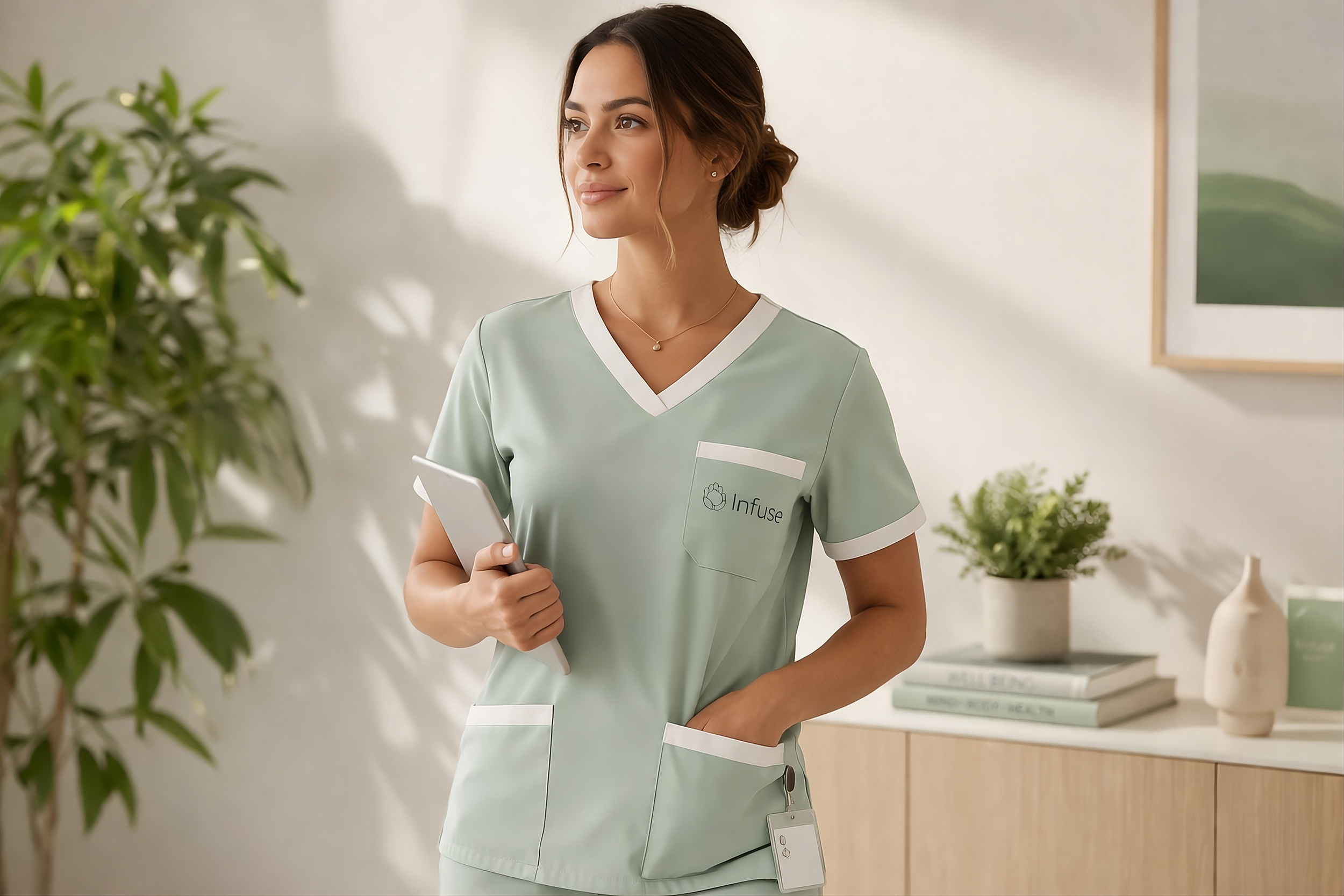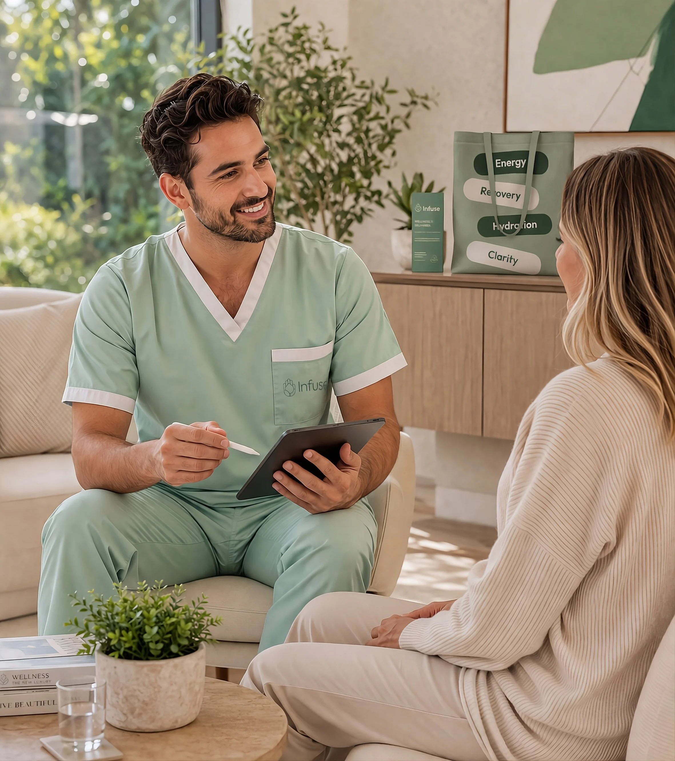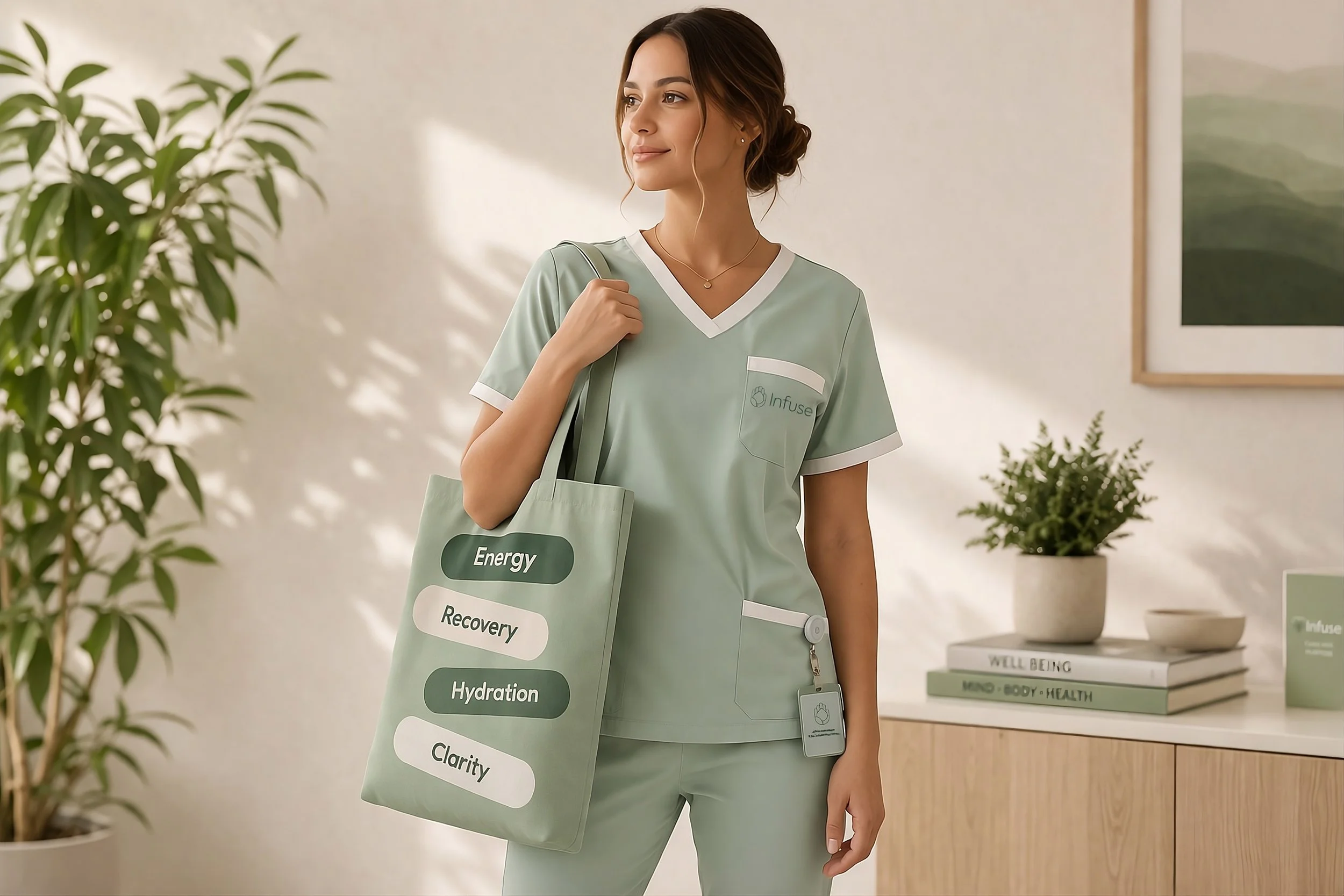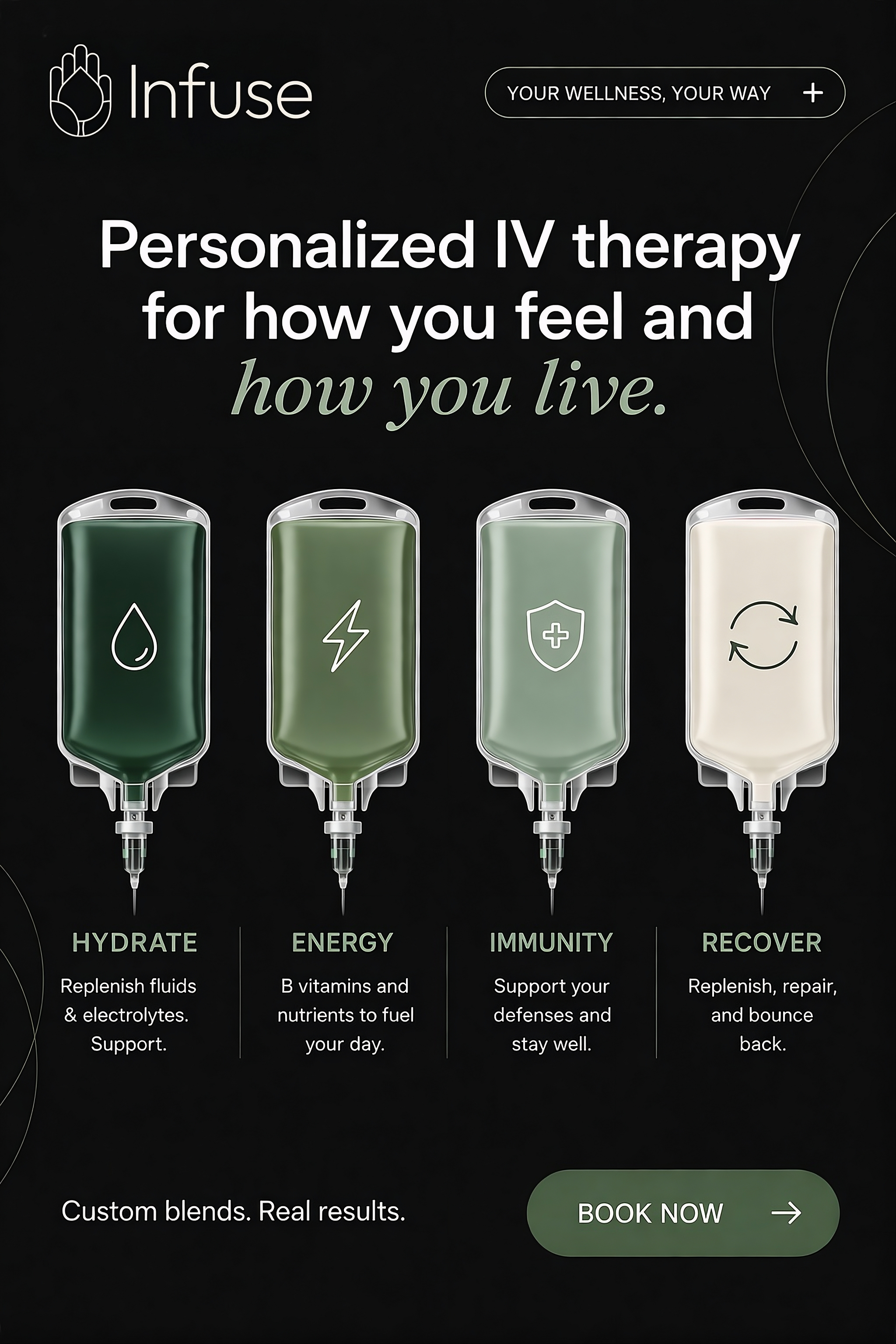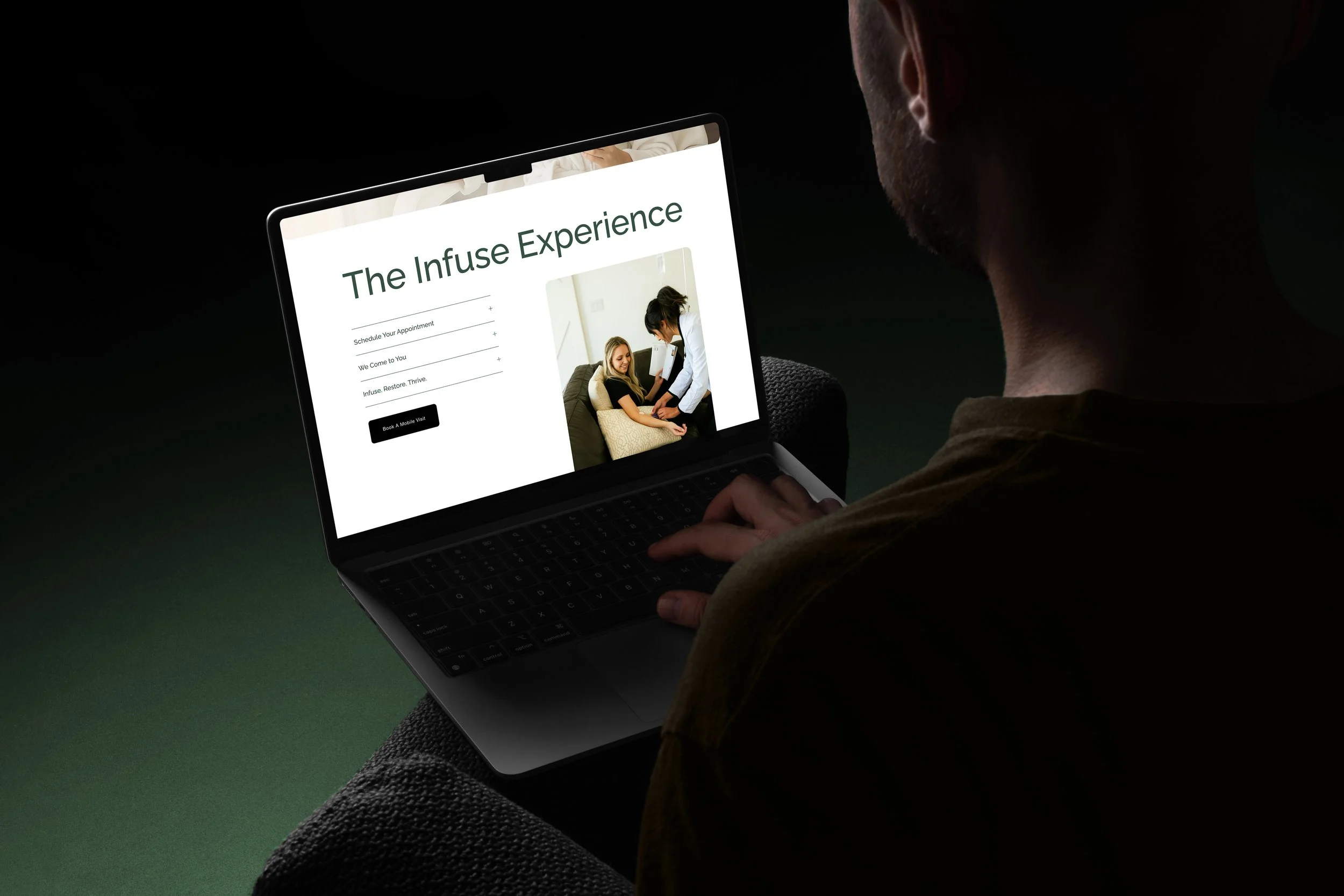 For Infuse IV Hydration, the brand extended beyond the logo and into the full client experience. From a refined, conversion-focused website to seamless concierge scheduling and automated follow-ups, every touchpoint was designed to feel effortless and elevated. Physical elements—IV bag labels, packaging, and uniforms—became extensions of the identity, reinforcing warmth, discretion, and physician-led authority at every interaction. The objective wasn’t just optimization. It was orchestration.