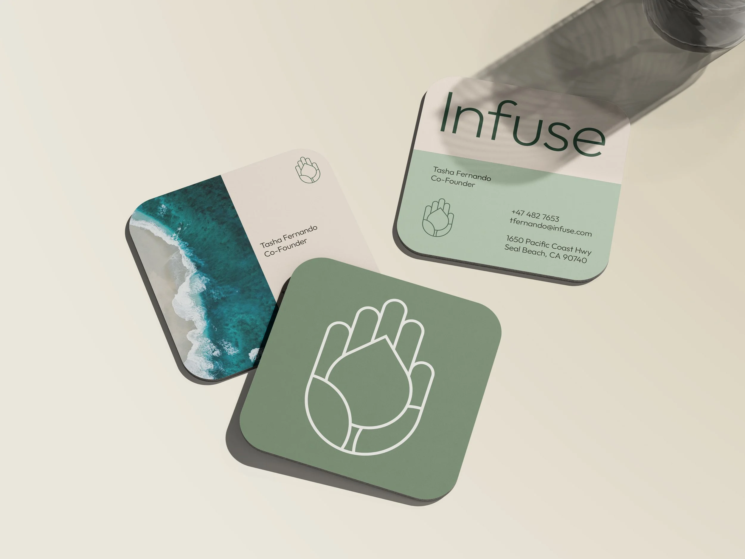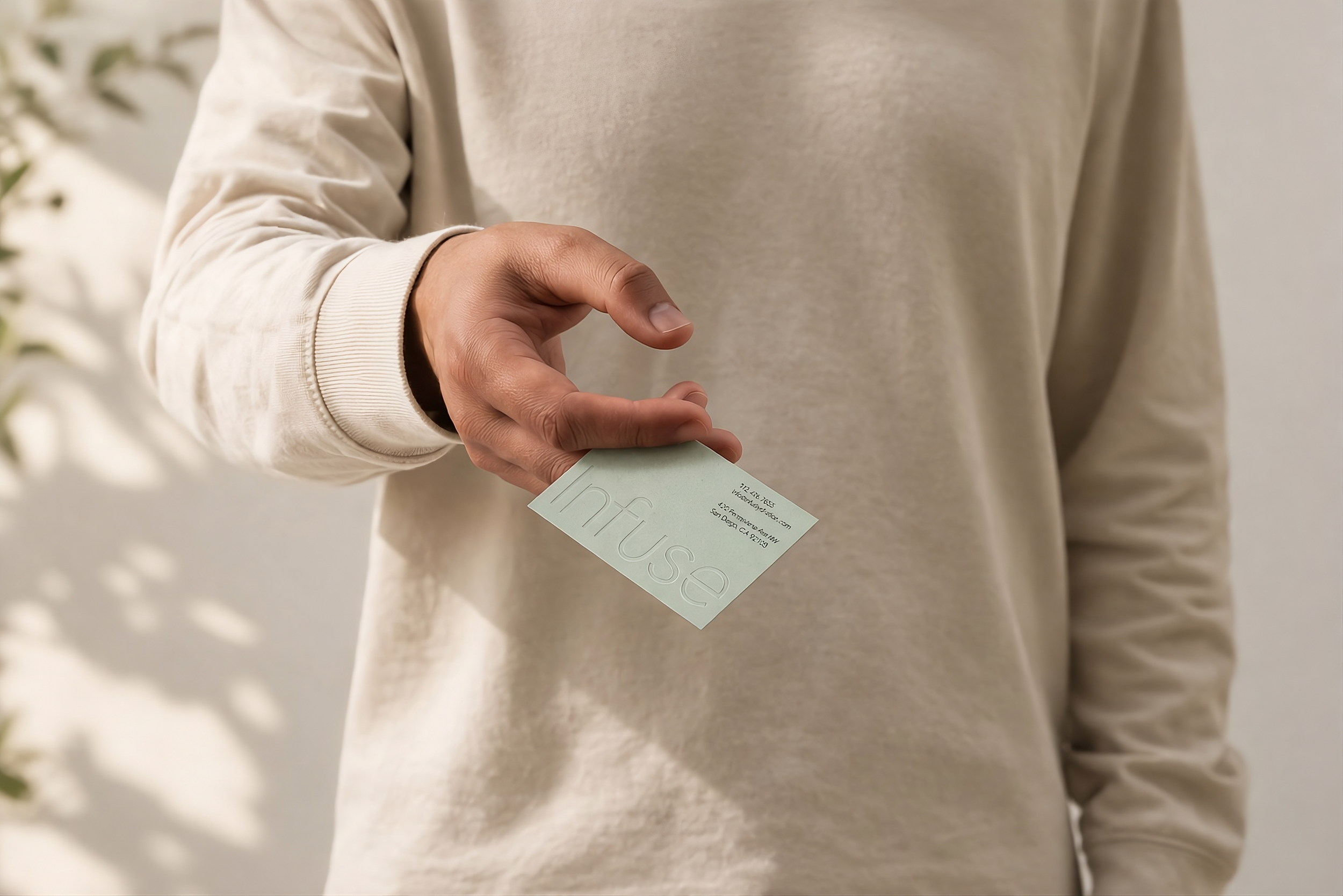 Infuse IV Hydration required more than an identity—it required intention. In a category defined by clinical sameness, we built a system that feels composed, restorative, and quietly authoritative. The open hand became the anchor: a symbol of guidance, offering, and concierge-level care delivered with precision. Deep evergreen tones ground the brand in stability and longevity, while softened sage hues introduce warmth and renewal. Paired with a modern typographic structure, the identity balances science and serenity—medical credibility without sterility. Every element was constructed to feel deliberate, elevated, and human.