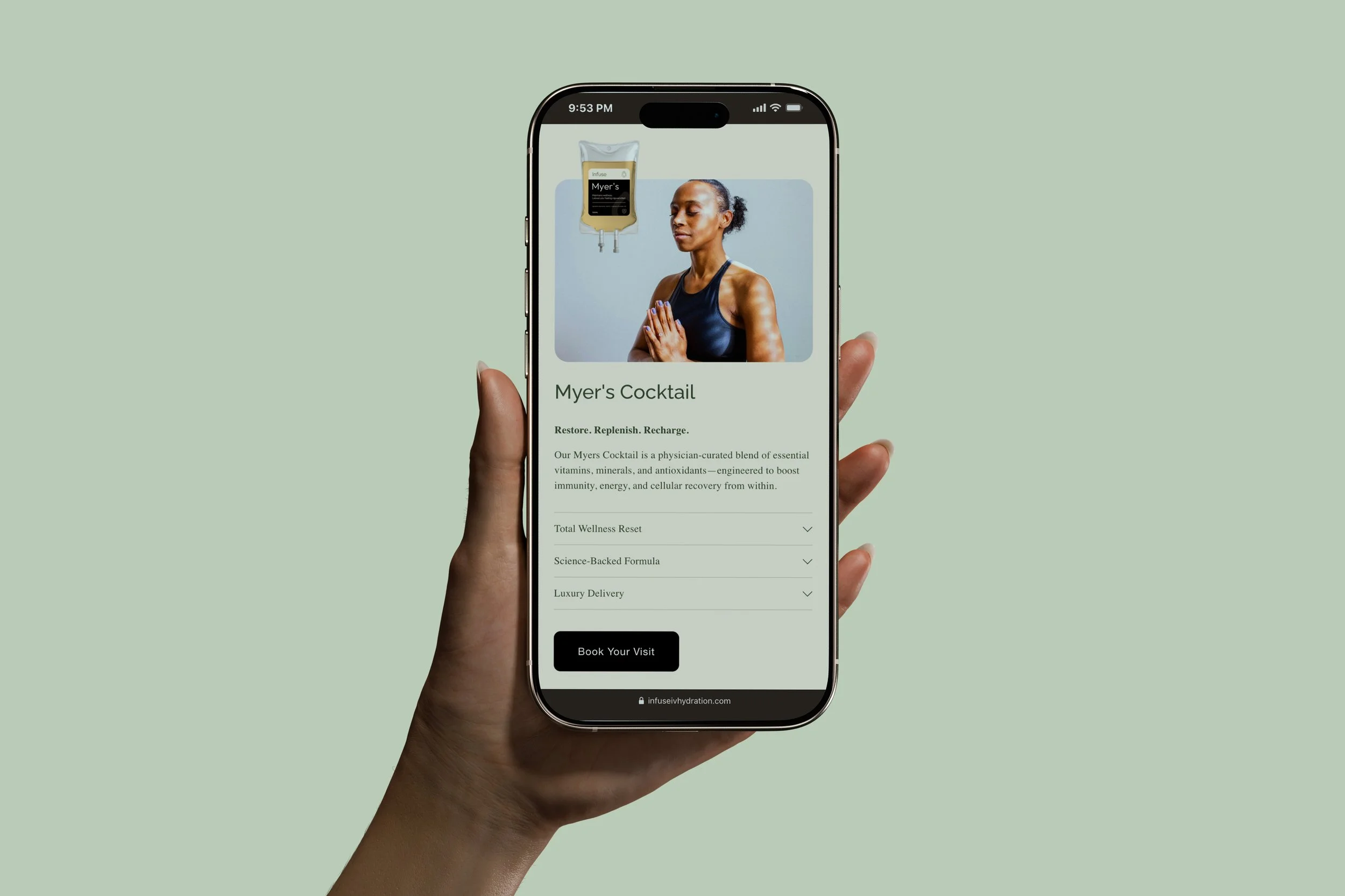 As the IV therapy market accelerates toward $20B+, differentiation has become the true competitive advantage. Infuse IV Hydration engaged us to develop a luxury brand strategy that would define a new category standard.